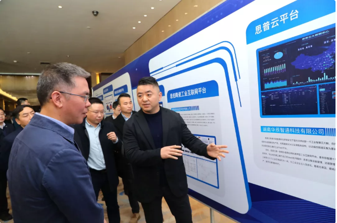 • Ezpay智通总经理傅帝向湖南省工业和信息化厅党组书记、厅长曹慧泉介绍思普云在工业领域应用情况